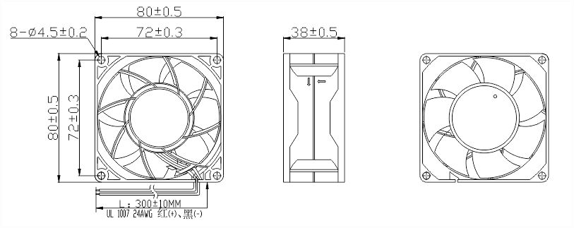 直流轴流黄色香蕉视频网站8038安装尺寸图纸: